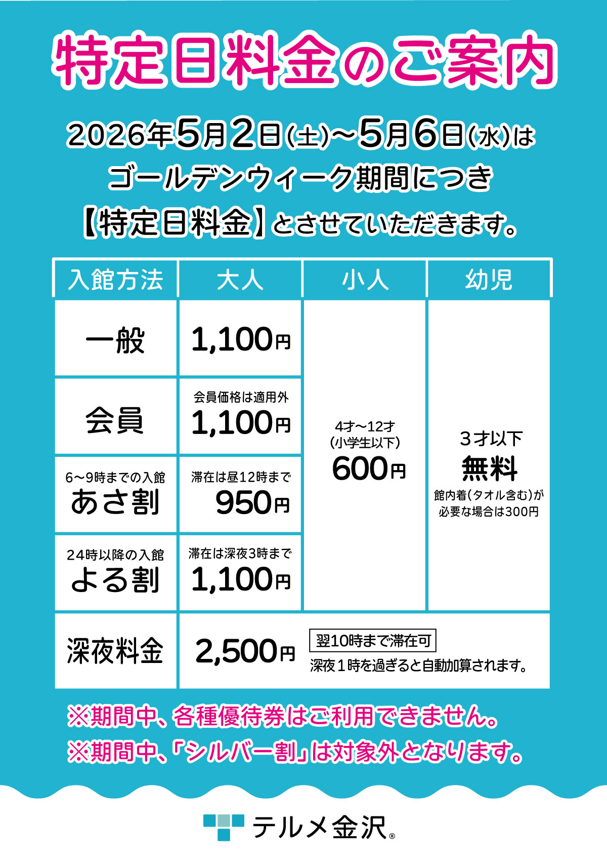 いつもテルメ金沢をご利用いただき誠にありがとうございます。