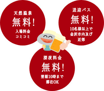 ご家族やご親戚、気の合うご友人との小宴会もテルメ金沢で。 人数に応じた席の予約もでき、子供用メニューも揃えて老若男女が楽しめるひとときをご提供いたします。