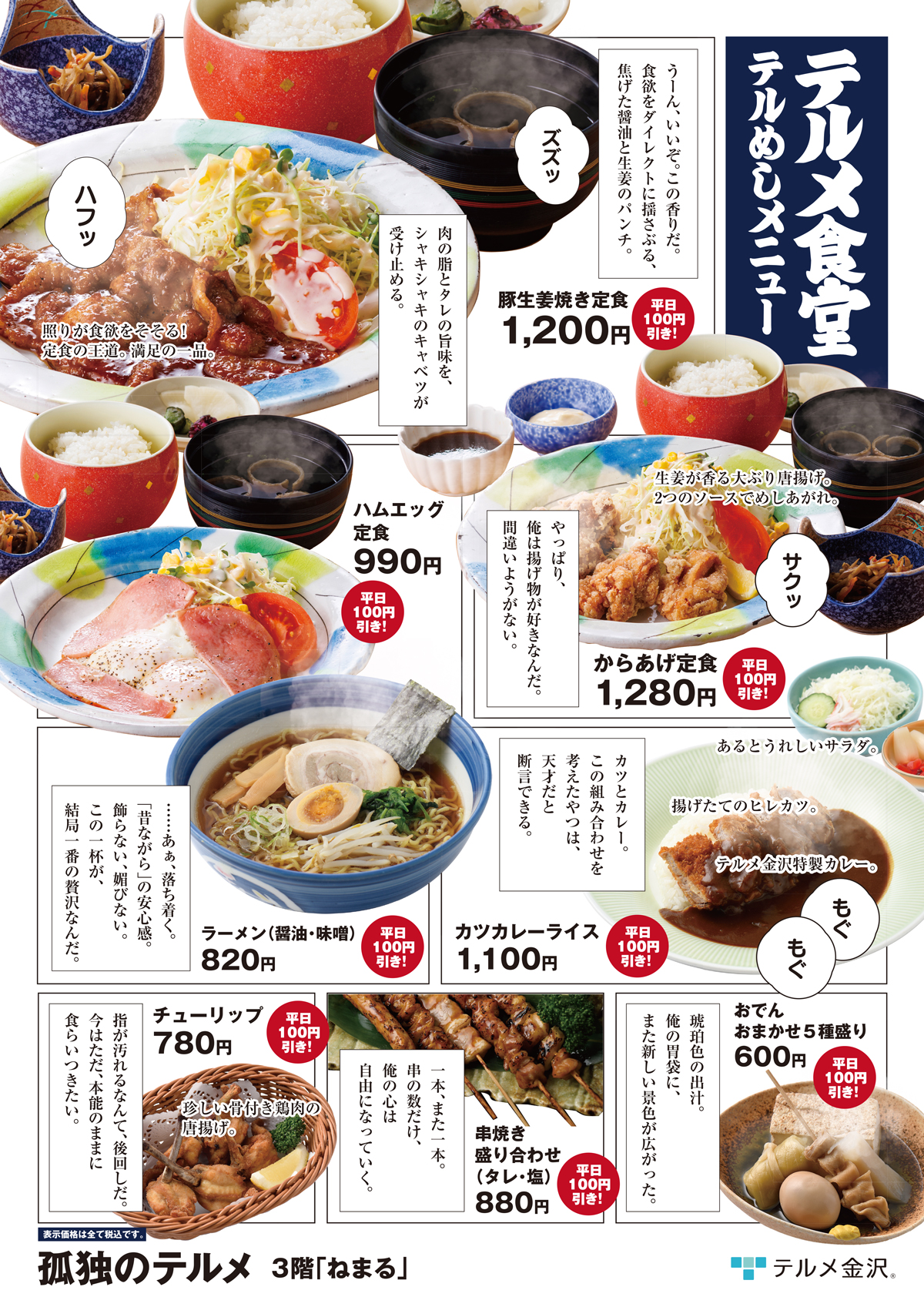 【平日限定】テルめしメニュー全品100円引き