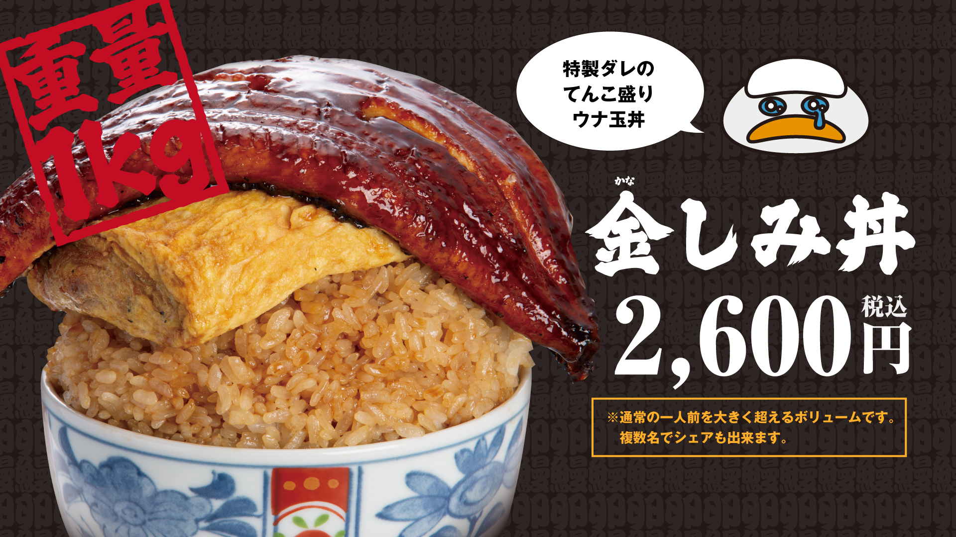 その名も、総重量1kg超えのスタミナ丼「肉(にく)しみ丼」と「金(かな)しみ丼」です。