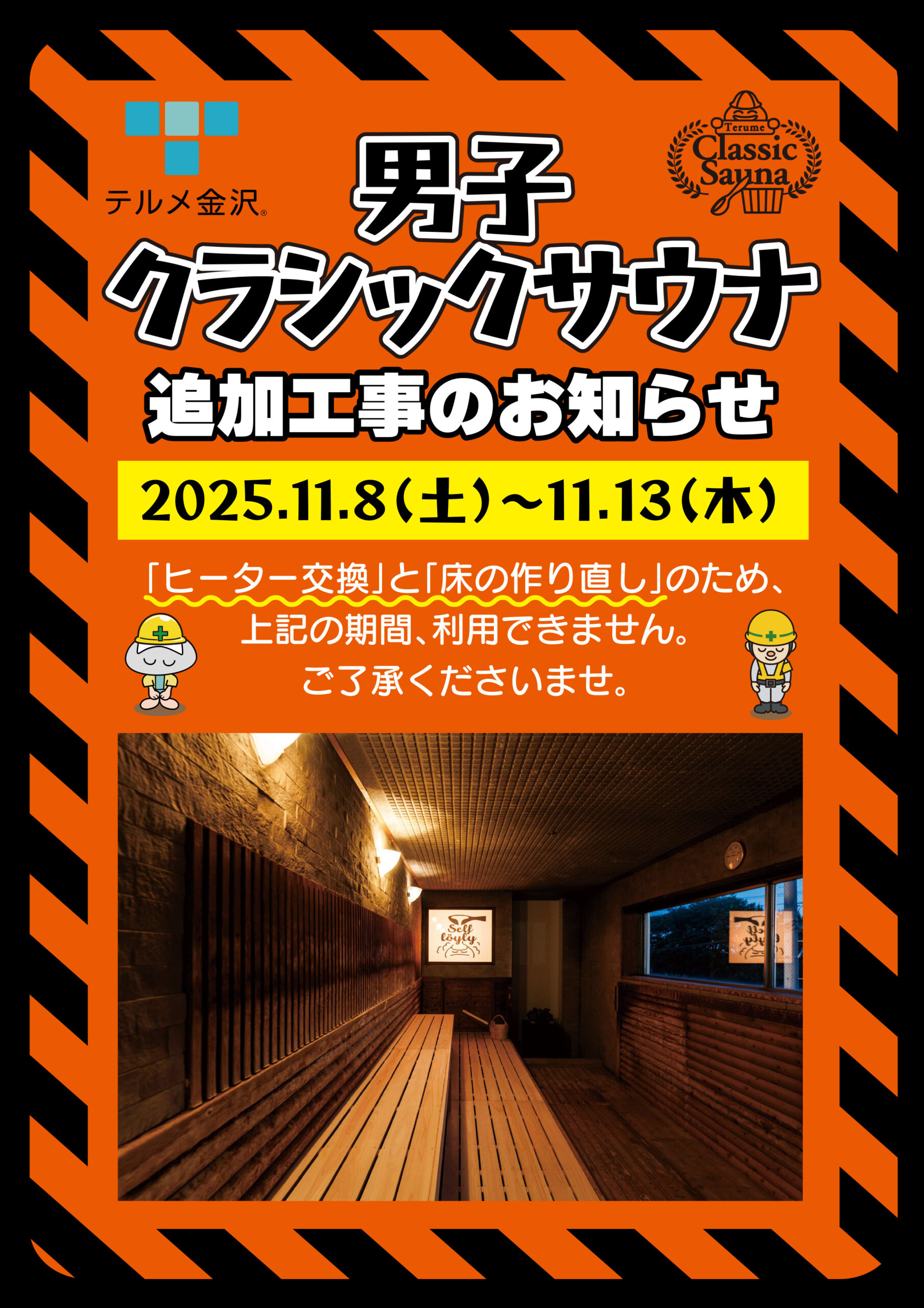 「男性クラシックサウナ」追加工事のお知らせ
